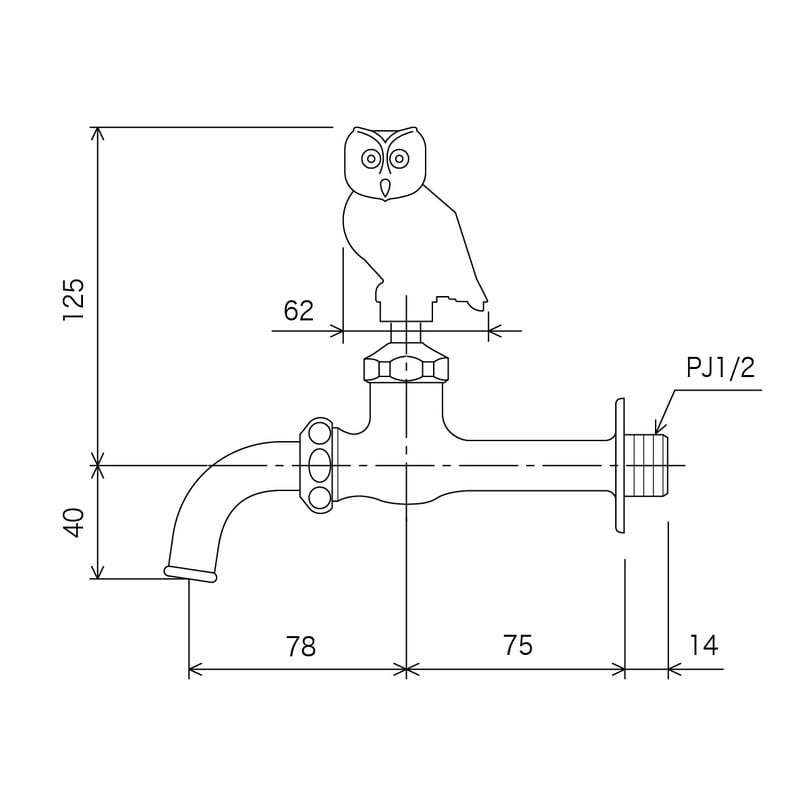 KVK 2300178 ガーデニング水栓 フクロウ付 K125E 1個(ご注文単位1個)【直送品】