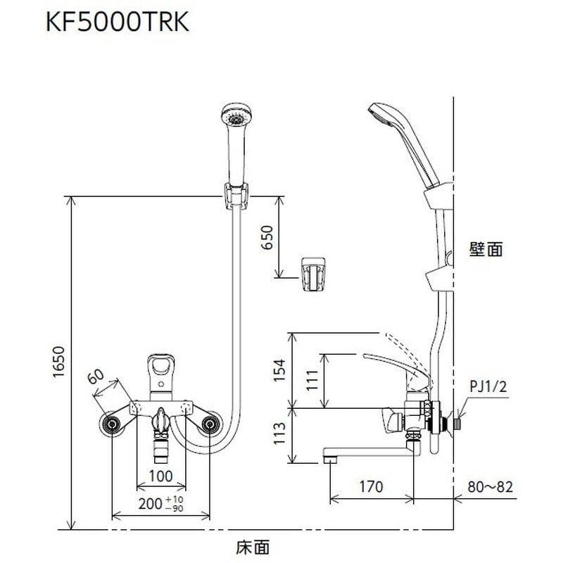 KVK 2302834 寒シングルシャワー楽付王170mmパイプ付 KF5000ZTRK 1個(ご注文単位1個)【直送品】