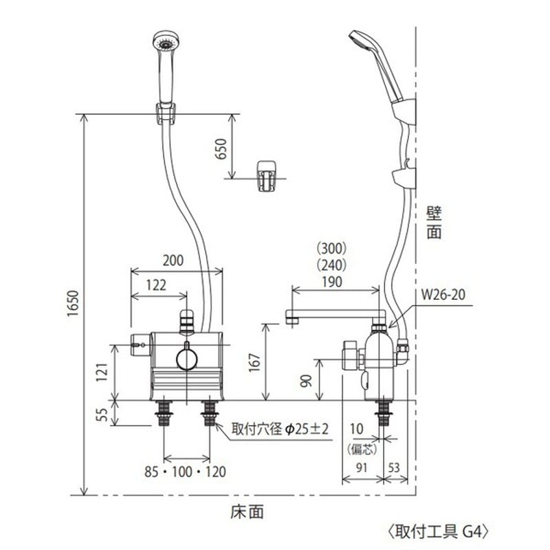 KVK 2303125 デッキ形サーモスタット式シャワー300mmパイプ付 KF3008LR3HS 1個(ご注文単位1個)【直送品】