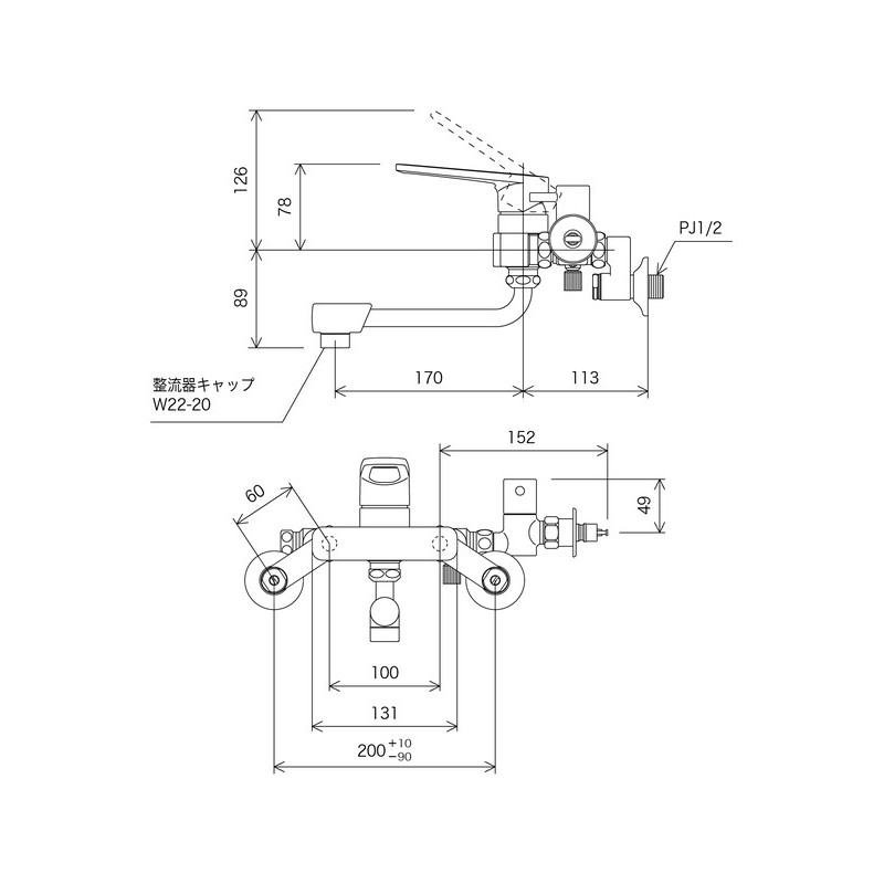 ●呼び径:13(PJ1/2)mm●奥行:200mm●高さ:211mm