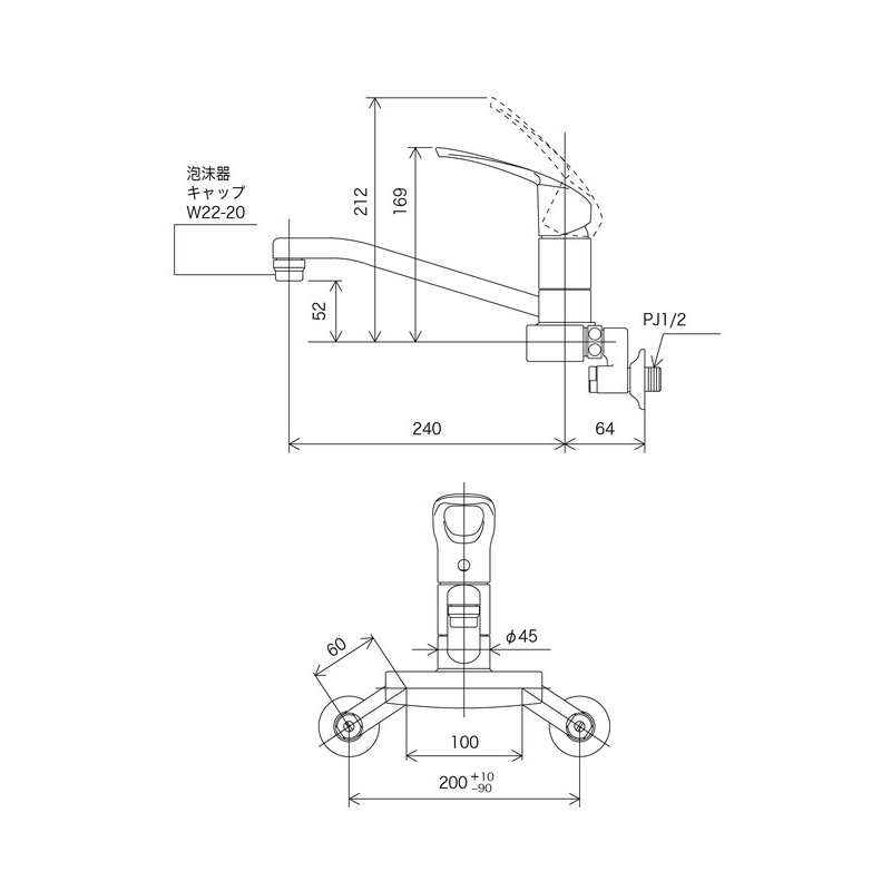 取付ねじ系:PJ1/2/取付ピッチ:110~210mm/パイプ長さ:170mm