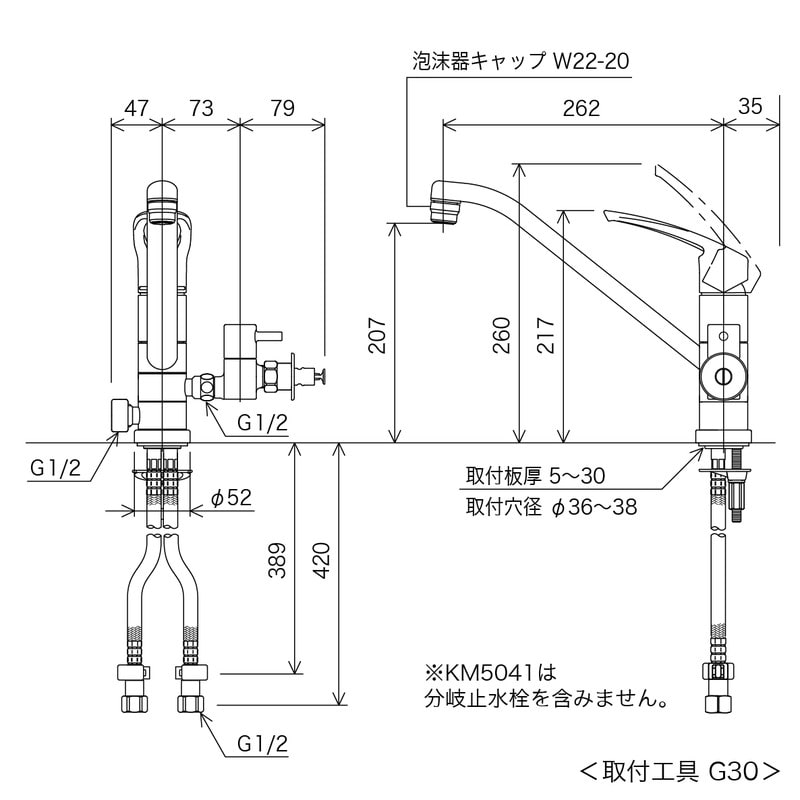 KVK 2300737 流し台混合栓 止水栓付 KM5041TU 1個(ご注文単位1個)【直送品】