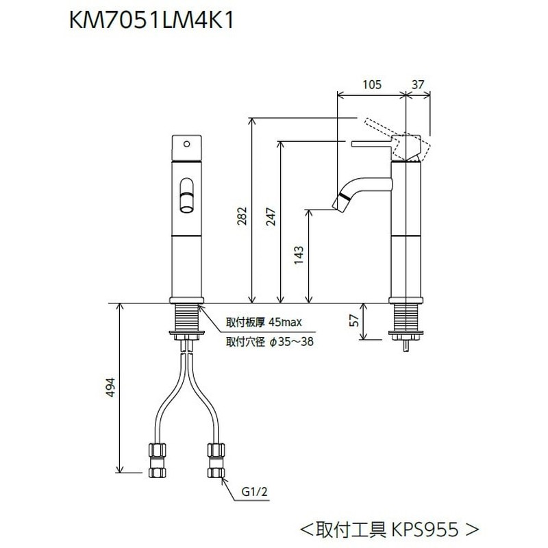 接続ねじ系:G1/2/取付穴径:φ35~39