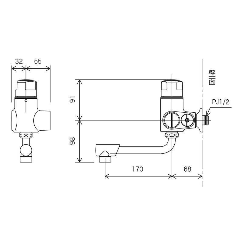 ●呼び径:13(PJ1/2)mm●奥行:91mm●高さ:83mm●A:83mm