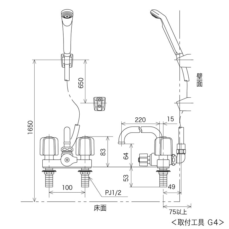 取付ねじ系:PJ1/2/取付穴径:φ22~φ24/吐水長さ:300mm
