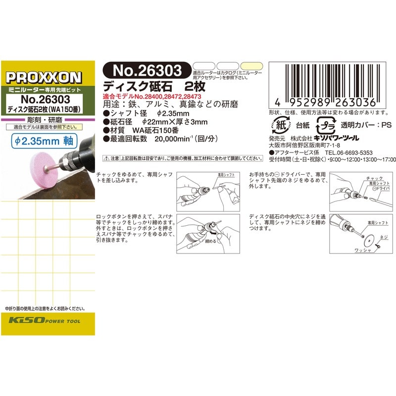 PROXXON 428283 ディスク砥石 2枚シャフト付 #120104 1個(ご注文単位1個)【直送品】