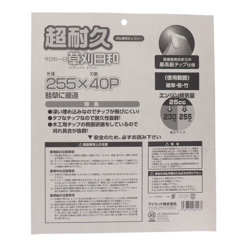 アイウッド 4344488 チップソー草刈日和 超耐久 255mm #004070 1個(ご注文単位1個)【直送品】