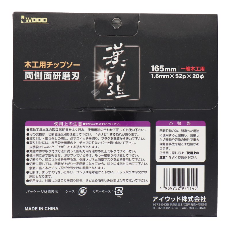 アイウッド 4342551 木工用チップソー 165×1.6×52P #004578 1個(ご注文単位1個)【直送品】