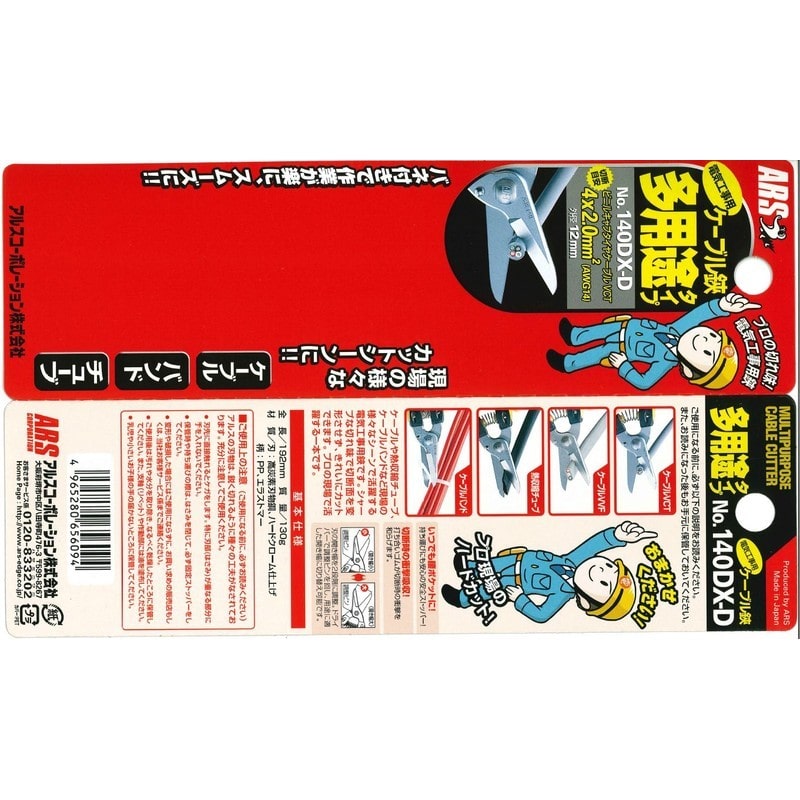 アルス 101410 140DX-D 電工ケーブル鋏 多用途タイプ 1個(ご注文単位1個)【直送品】