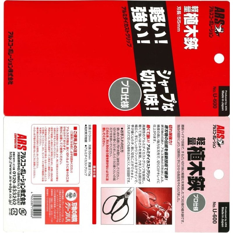 アルス 101365 U-600 植木鋏 1個(ご注文単位1個)【直送品】