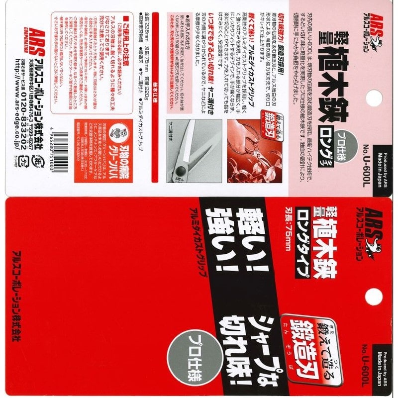 アルス 101357 U-600L 軽量植木鋏 ロングタイプ 1個(ご注文単位1個)【直送品】