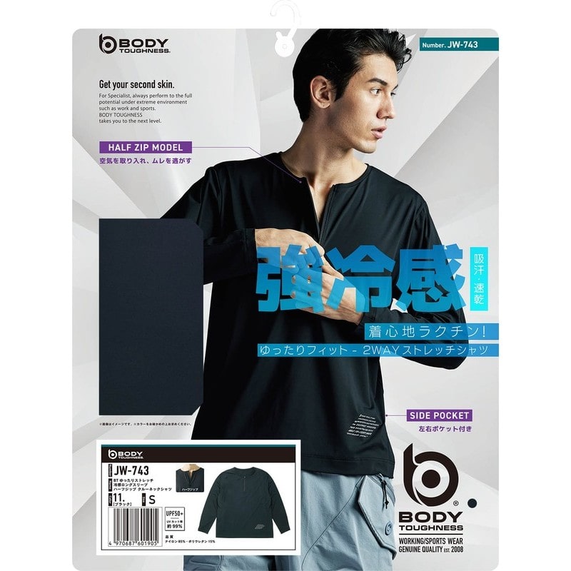 おたふく手袋 2118138 ハーフジップ クルーネックシャツ BK Sサイズ JW-743 1個(ご注文単位1個)【直送品】