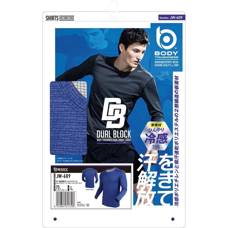 おたふく手袋 2116495 ロングスリーブ クルーネックシャツ ヘザーBL L JW-609 1個(ご注文単位1個)【直送品】