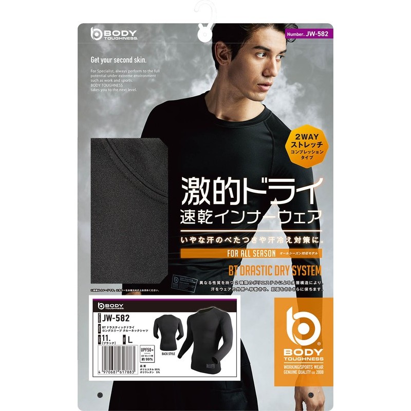 おたふく手袋 2118084 ロングスリーブ クルーネックシャツ BK Lサイズ JW-582 1個(ご注文単位1個)【直送品】