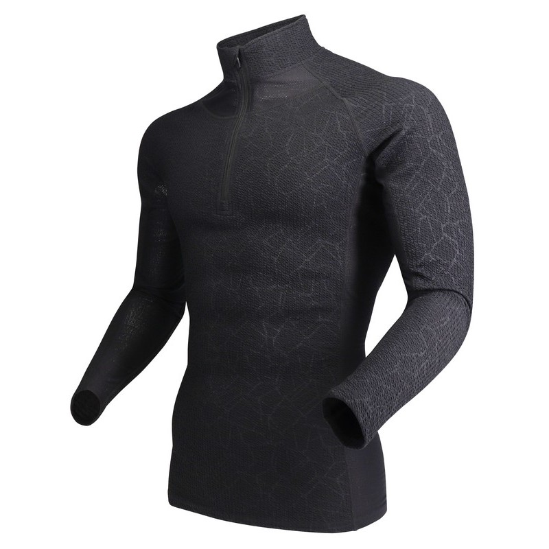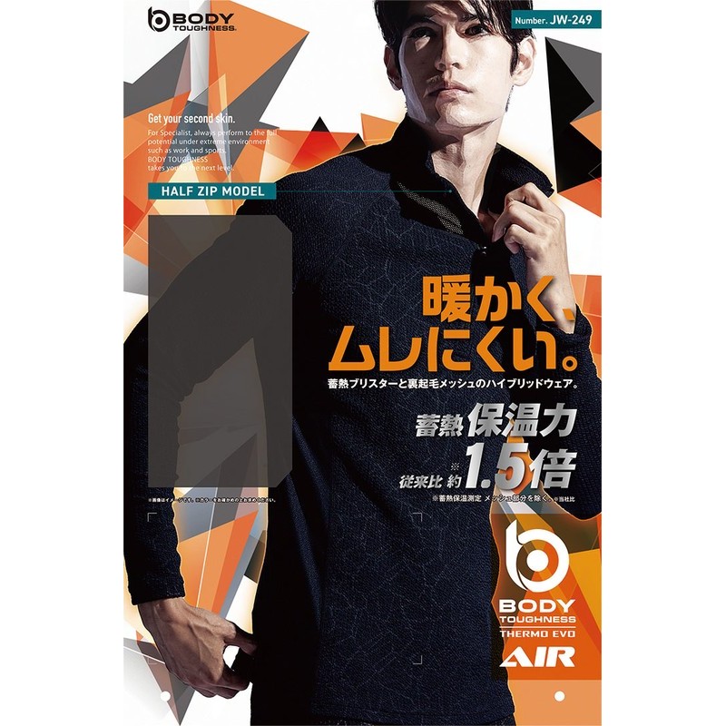 おたふく手袋 2117833 ハーフジップハイネックシャツ ジオBK Mサイズ JW-249 1個(ご注文単位1個)【直送品】