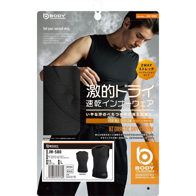 おたふく手袋 2118078 ノースリーブ クルーネックシャツ BK Lサイズ JW-580 1個(ご注文単位1個)【直送品】