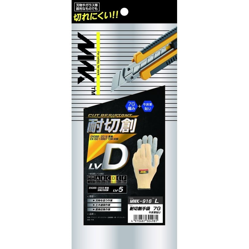 おたふく手袋 2116026 MWK-916 耐切創手袋 7G 牛床革 L 1個(ご注文単位1個)【直送品】