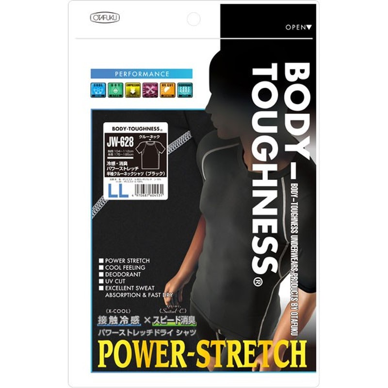 おたふく手袋 2112249 パワーストレッチ 半袖クルーネックシャツ LL ブラック JW-628 1個(ご注文単位1個)【直送品】