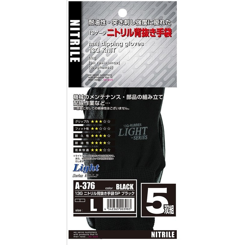 おたふく手袋 2111573 13Gニトリル背抜き手袋5P LL ブラック A-376 1個(ご注文単位1個)【直送品】
