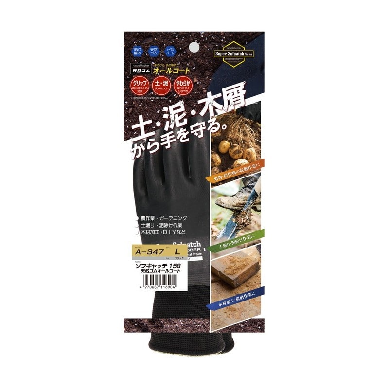 おたふく手袋 2116122 A-347ソフキャッチ15Gオールコート BK L 1個(ご注文単位1個)【直送品】