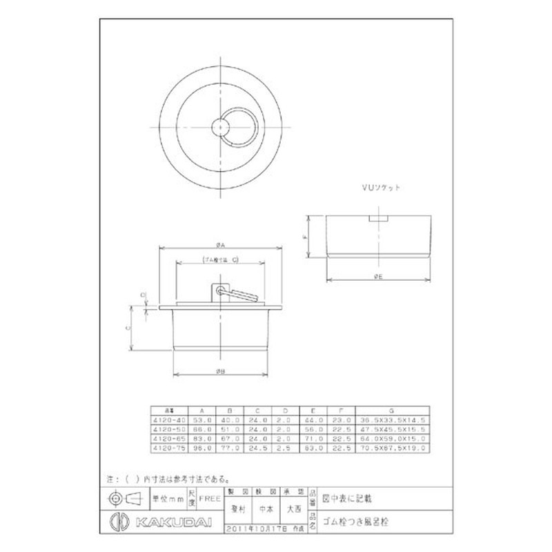 カクダイ 2221195 カクダイ 4120-65 ゴム栓つき風呂栓 #4120-65 1個(ご注文単位1個)【直送品】
