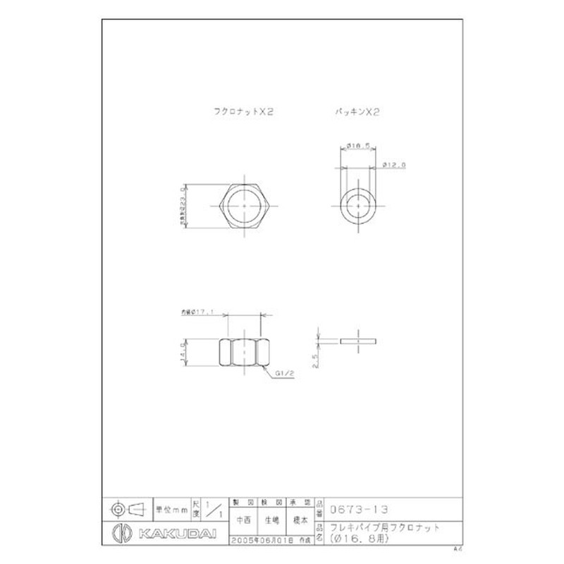 カクダイ 2222747 0673-13 フレキパイプ用フクロナット #0673-13 1個(ご注文単位1個)【直送品】