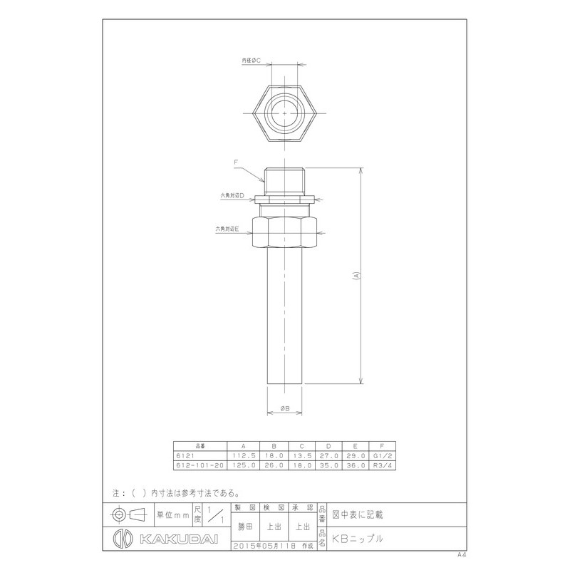 カクダイ 2222993 6121 KBニップル13M×13 #6121 1個(ご注文単位1個)【直送品】