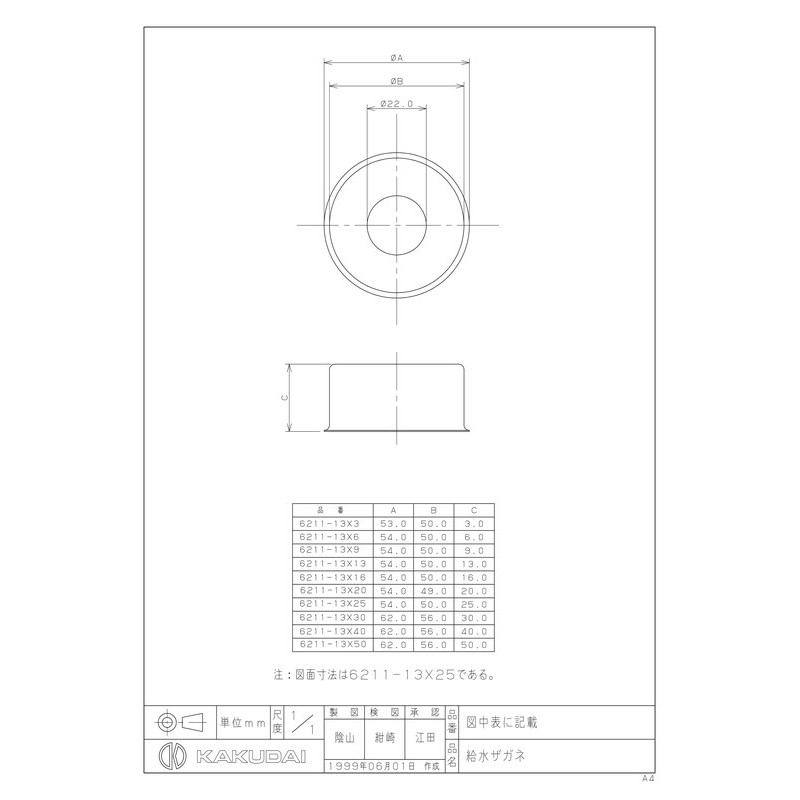 カクダイ 2223344 6211-13×40 給水ザガネ #6211-13X40 1個(ご注文単位1個)【直送品】