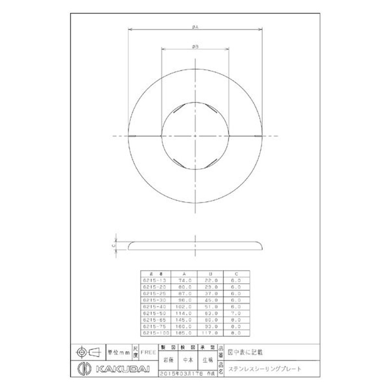 カクダイ 2223375 6215-30 ステンレスシーリングプレート #6215-30 1個(ご注文単位1個)【直送品】