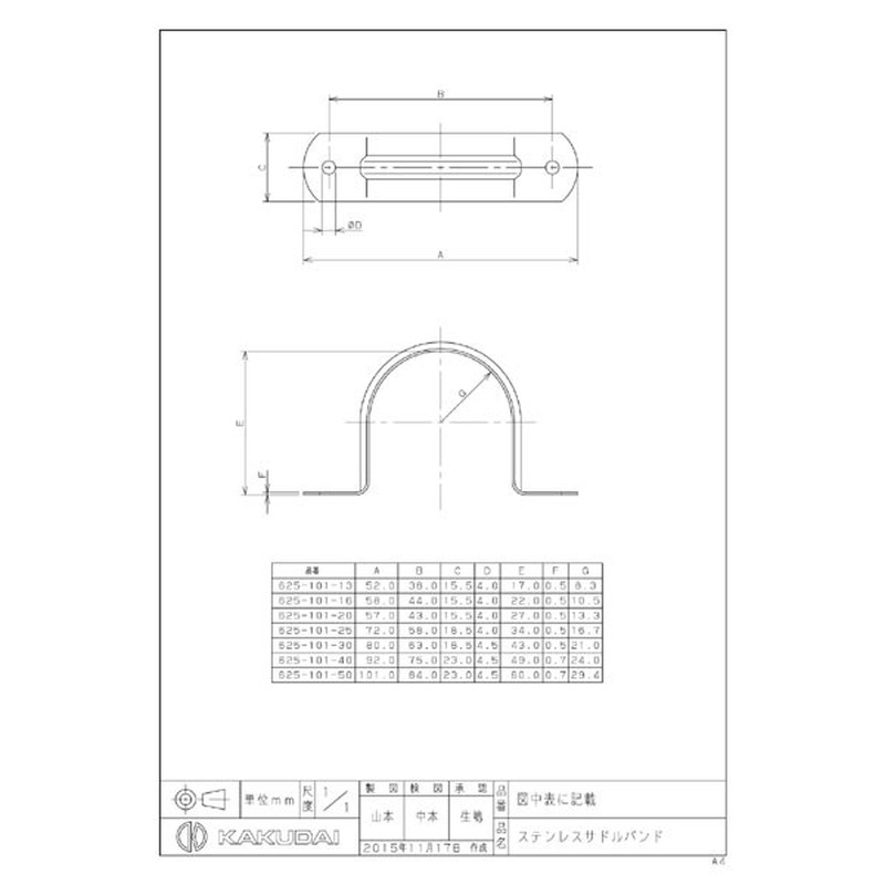 カクダイ 2223586 625-101-20 ステンレスサドルバンド 20 #625-101-20 1個(ご注文単位1個)【直送品】