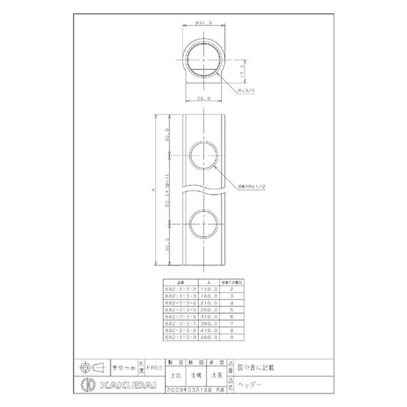 カクダイ 2224562 カクダイ 682-013-7 ヘッダー #682-013-7 1個(ご注文単位1個)【直送品】