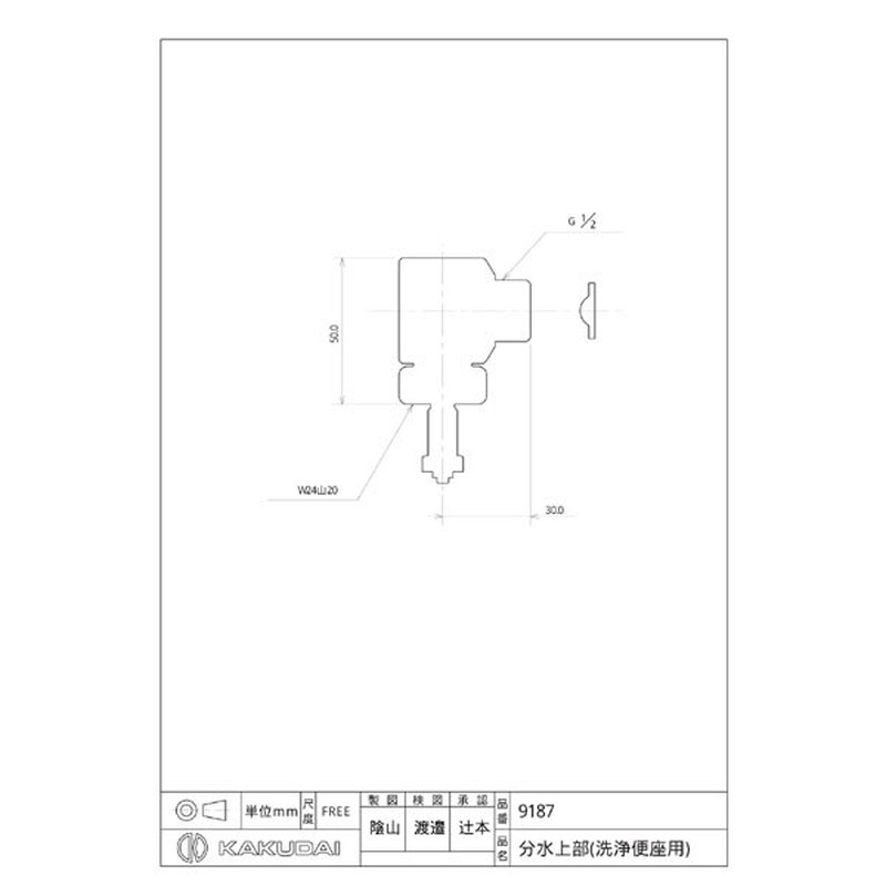 カクダイ 2226351 分水上部洗浄便座用 #9187 1個(ご注文単位1個)【直送品】