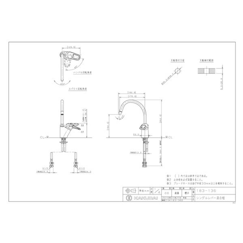 カクダイ 2229152 カクダイ 183-136 シングルレバー混合栓 #183-136 1個(ご注文単位1個)【直送品】