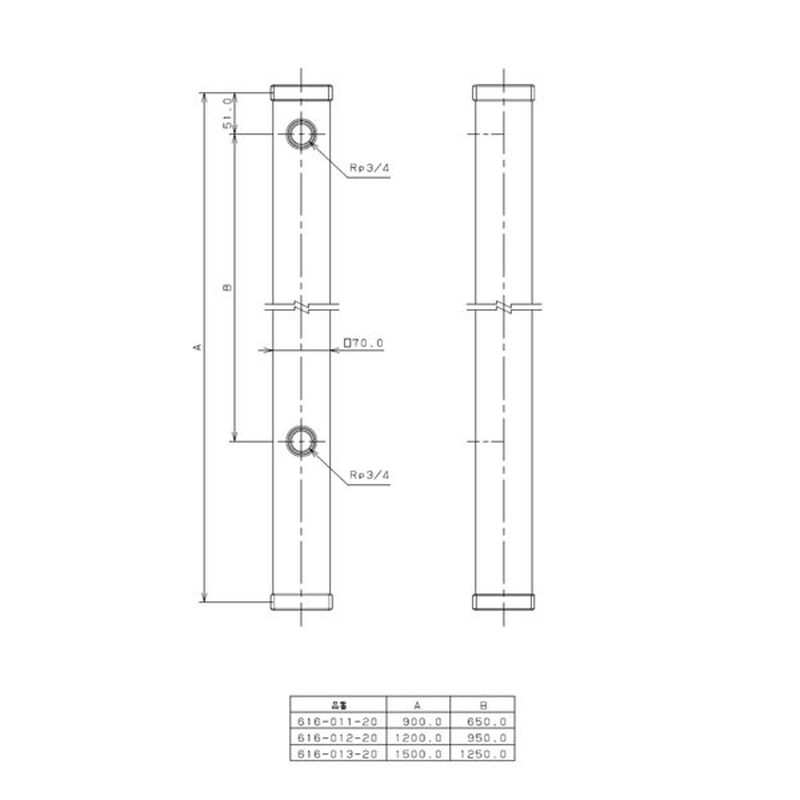 取付ねじ系:PJ1×2×取付ピッチ:110~210×パイプ長さ:170mm