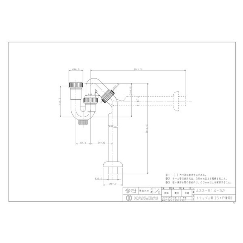 カクダイ 2229496 トラップU管SP兼用 #433-514-32 1個(ご注文単位1個)【直送品】
