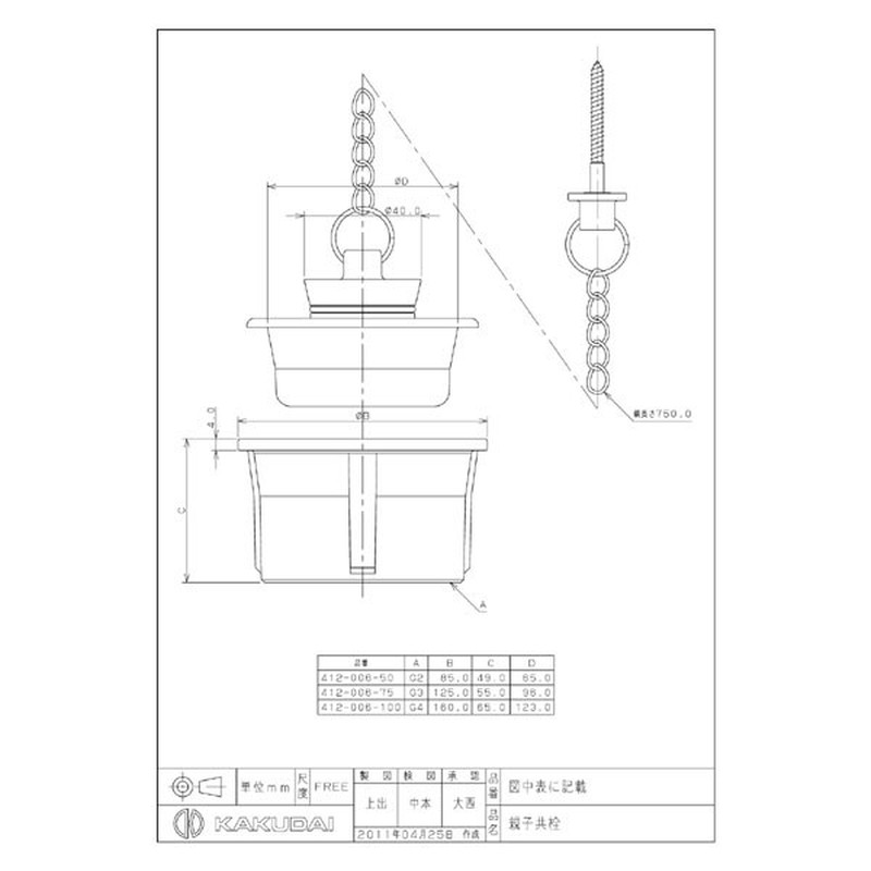 カクダイ 2221202 412-006-100 親子共栓 #412-006-100 1個(ご注文単位1個)【直送品】