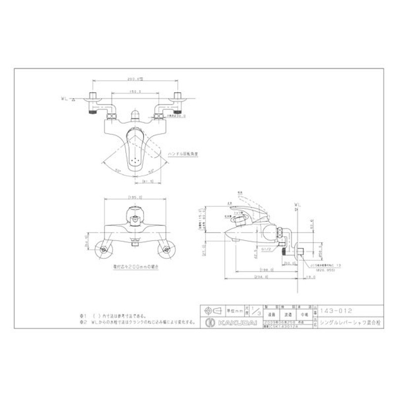 カクダイ 2220194 シングルレバーシャワ混合栓 #143-012 1個(ご注文単位1個)【直送品】