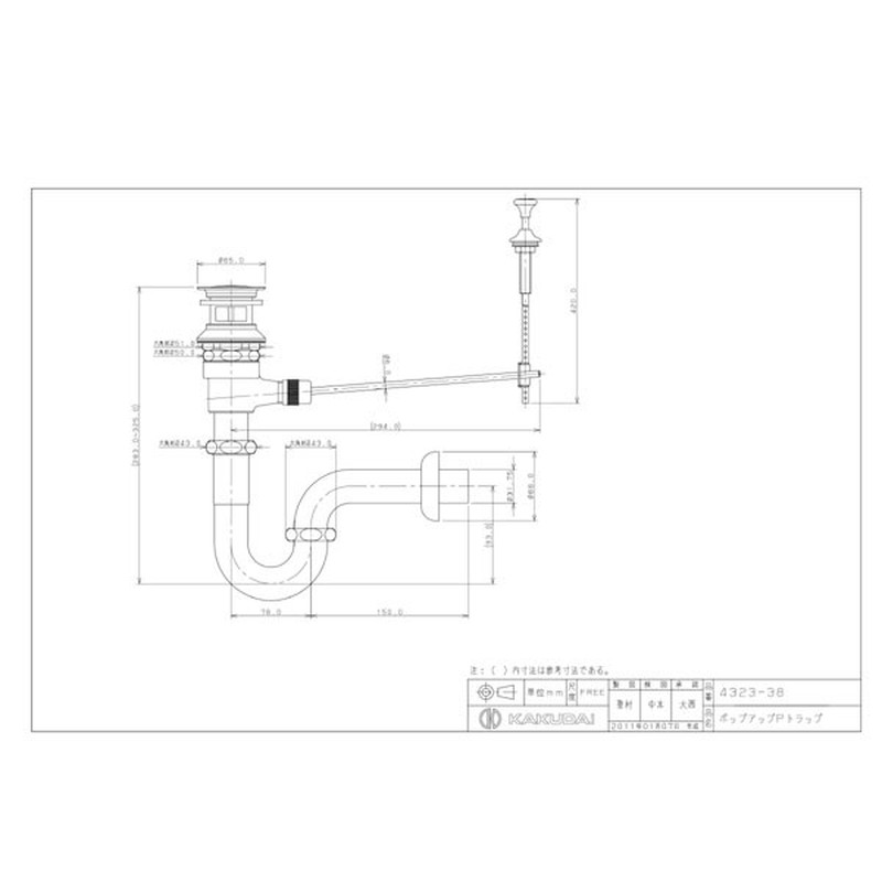 カクダイ 2221471 カクダイ 4323-38 ポップアップPトラップ #4323-38 1個(ご注文単位1個)【直送品】