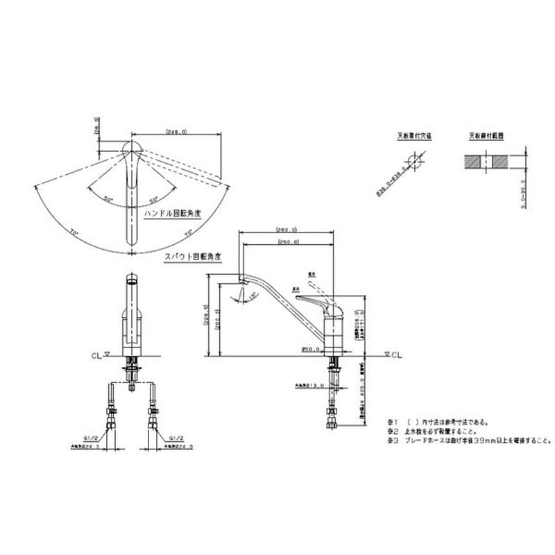 取付ねじ系:PJ1/2/取付ピッチ:110~210mm/パイプ長さ:170mm