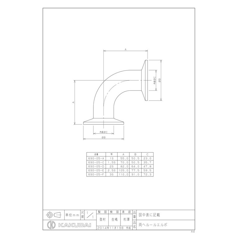 カクダイ 2224738 両へルールエルボ/3S #690-05-F 1個(ご注文単位1個)【直送品】