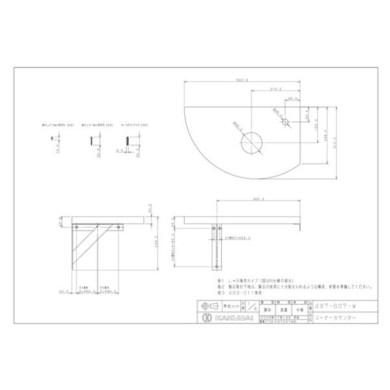 カクダイ 2222063 497-007-W コーナーカウンター/深雪 #497-007-W 1個(ご注文単位1個)【直送品】