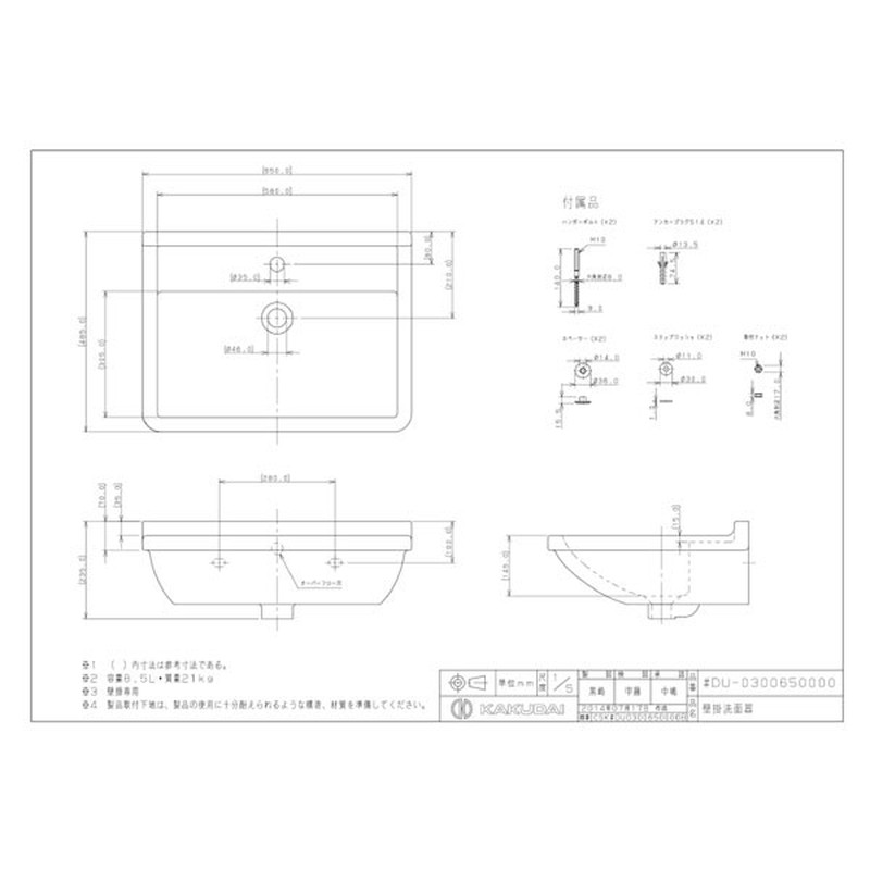 カクダイ 2230150 カクダイ DU-0300650000 壁掛洗面器 1個(ご注文単位1個)【直送品】