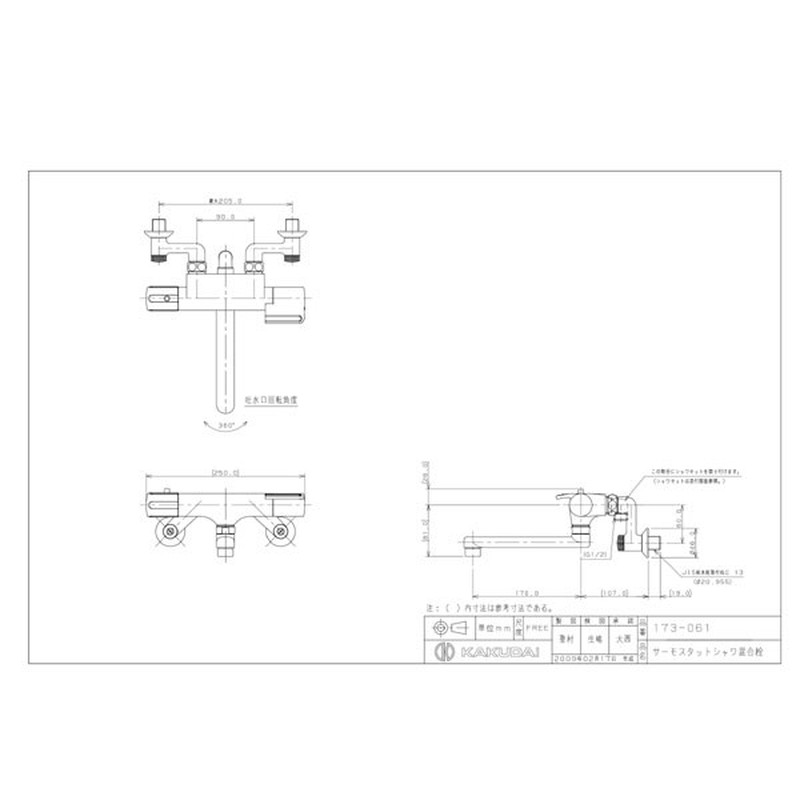 カクダイ 2220253 サーモスタットシャワ混合栓 #173-061 1個(ご注文単位1個)【直送品】