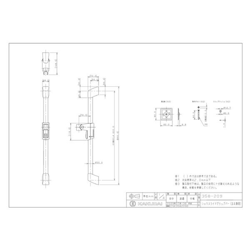 カクダイ 2220858 シャワスライドグリップバー #358-209 1個(ご注文単位1個)【直送品】