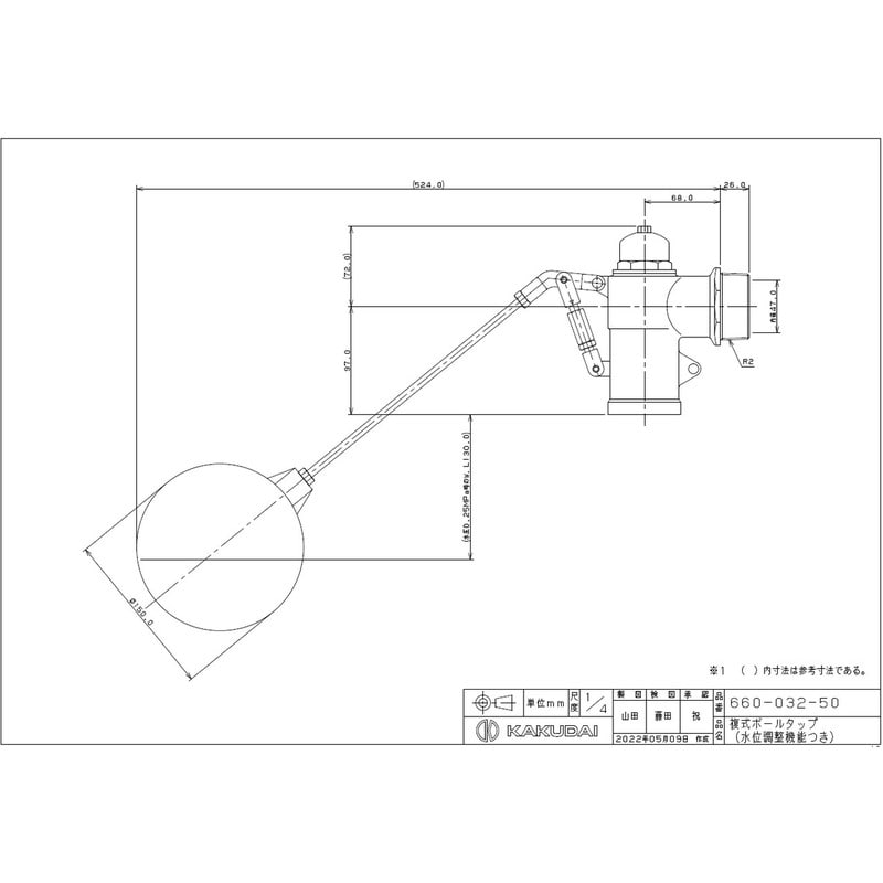 カクダイ 2235714 複式ボールタップ #660-032-50 1個(ご注文単位1個)【直送品】