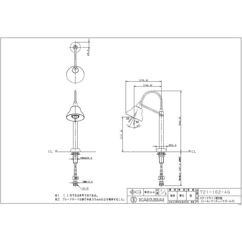 カクダイ 2235480 721-102-AG スタンドライト水栓T ATG #721-102-AG 1個(ご注文単位1個)【直送品】