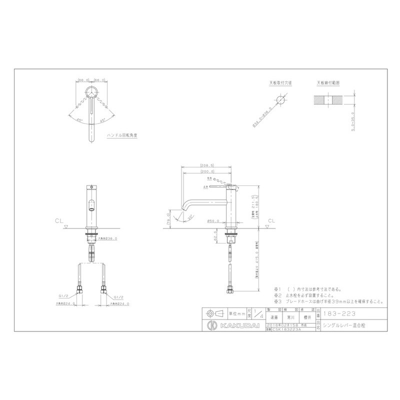 カクダイ 2231544 183-223 シングルレバー混合栓 #183-223 1個(ご注文単位1個)【直送品】