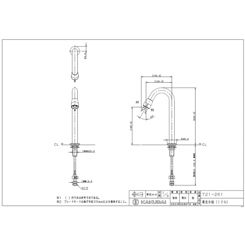 カクダイ 2235825 衛生水栓M #721-261 1個(ご注文単位1個)【直送品】