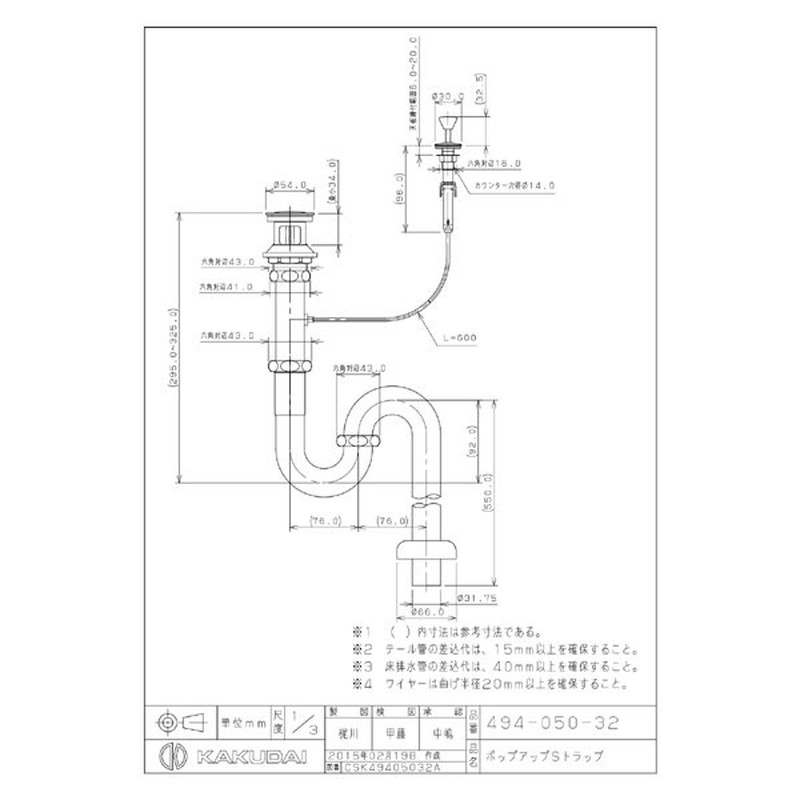 カクダイ 2229674 494-050-32 ポップアップSトラップ #494-050-32 1個(ご注文単位1個)【直送品】