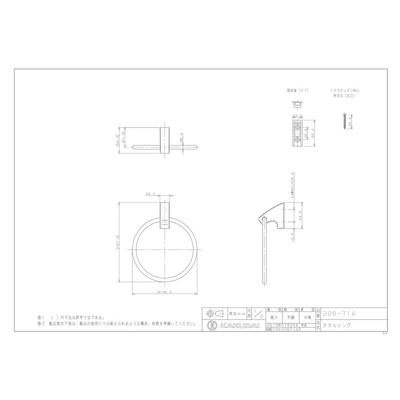 カクダイ 2231629 206-714 タオルリング #206-714 1個(ご注文単位1個)【直送品】